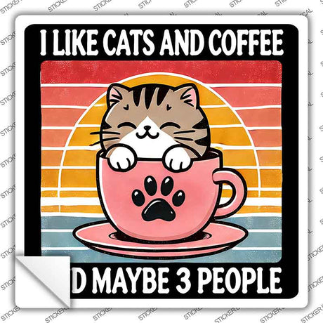 Cats and Coffee Novelty Square Sticker Decal SQ-1712s