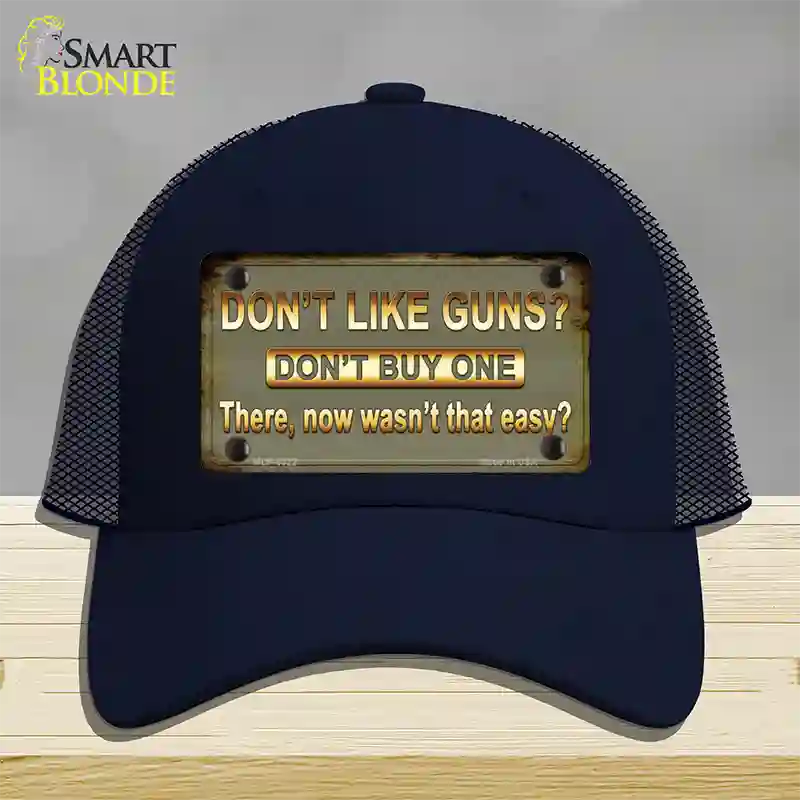 Dont Like Guns Novelty License Plate Hat. Show off your style with our mounted 4" x 2.2" metal patches available in 3 different styles and over 12 different colors. Our metal patches are made out of .025 grade aluminum and the designs are dye sublimated onto the metal to give a quality high gloss finish. Our metal patches are firmly attached using double cap rivets to give the patch an elegant tight fitting look!