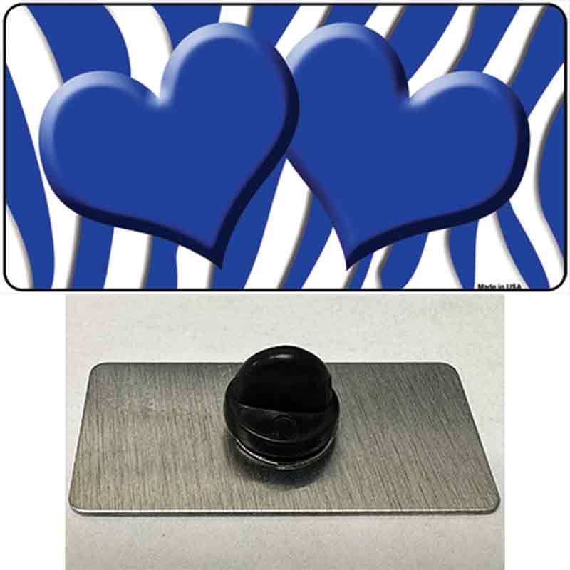 Blue White Zebra Blue Centered Hearts Novelty Metal Hat Pin. Our hat pins/lapel pins can be used to add flair to any item including hats, suits, backpacks, and anything you can have a pin on. Check out our 14,000+ designs to find some that work for your style! Each pin will come bagged to make sure it stays in pristine condition! Our hat pins measure to be 1.5" x .75" with a nice rubber clutch on the back, with this small touch of style it is sure to make a big appearance when shown off.