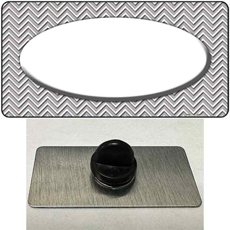 Grey White Chevon White Oval Novelty Metal Hat Pin. Our hat pins/lapel pins can be used to add flair to any item including hats, suits, backpacks, and anything you can have a pin on. Check out our 14,000+ designs to find some that work for your style! Each pin will come bagged to make sure it stays in pristine condition! Our hat pins measure to be 1.5" x .75" with a nice rubber clutch on the back, with this small touch of style it is sure to make a big appearance when shown off.