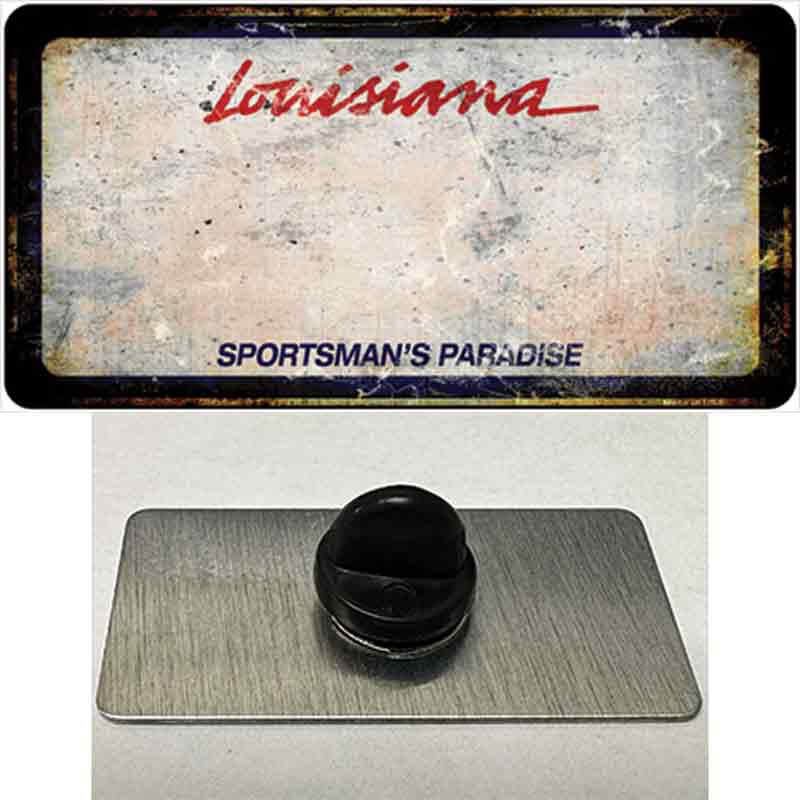 Louisiana Sportsmans Palace Rusty Blank Novelty Metal Hat Pin. Our hat pins/lapel pins can be used to add flair to any item including hats, suits, backpacks, and anything you can have a pin on. Check out our 14,000+ designs to find some that work for your style! Each pin will come bagged to make sure it stays in pristine condition! Our hat pins measure to be 1.5" x .75" with a nice rubber clutch on the back, with this small touch of style it is sure to make a big appearance when shown off.