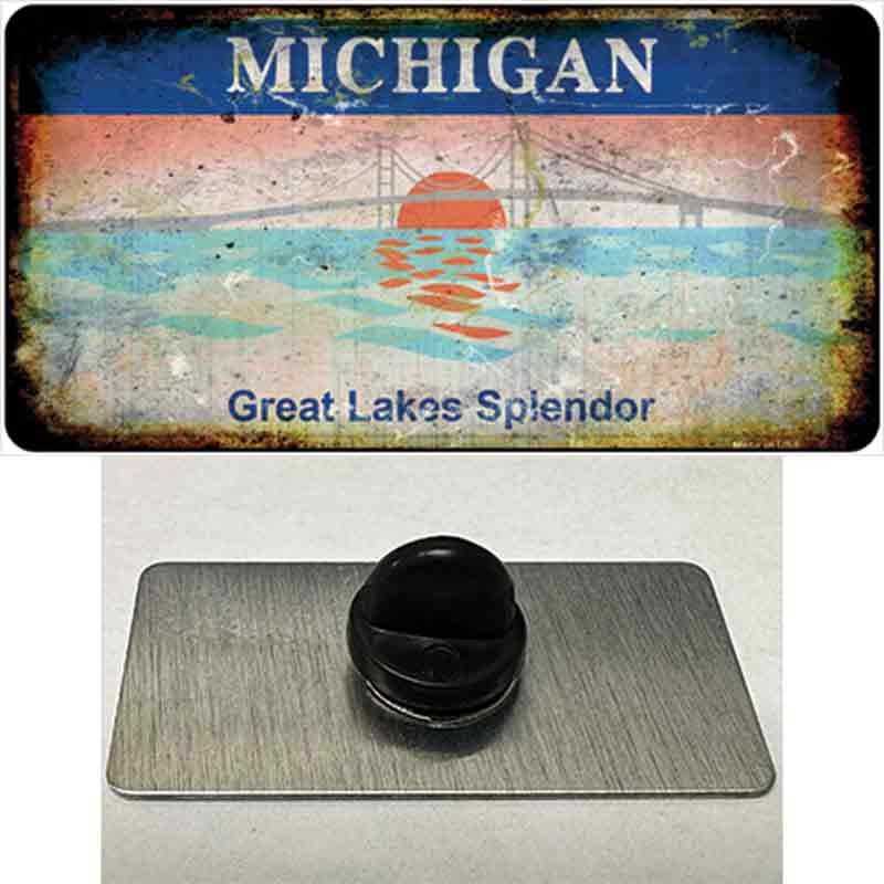 Michigan Rusty State Novelty Metal Hat Pin. Our hat pins/lapel pins can be used to add flair to any item including hats, suits, backpacks, and anything you can have a pin on. Check out our 14,000+ designs to find some that work for your style! Each pin will come bagged to make sure it stays in pristine condition! Our hat pins measure to be 1.5" x .75" with a nice rubber clutch on the back, with this small touch of style it is sure to make a big appearance when shown off.