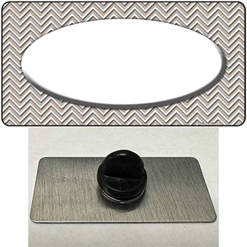 Tan White Chevon White Center Oval Novelty Metal Hat Pin. Our hat pins/lapel pins can be used to add flair to any item including hats, suits, backpacks, and anything you can have a pin on. Check out our 14,000+ designs to find some that work for your style! Each pin will come bagged to make sure it stays in pristine condition! Our hat pins measure to be 1.5" x .75" with a nice rubber clutch on the back, with this small touch of style it is sure to make a big appearance when shown off.