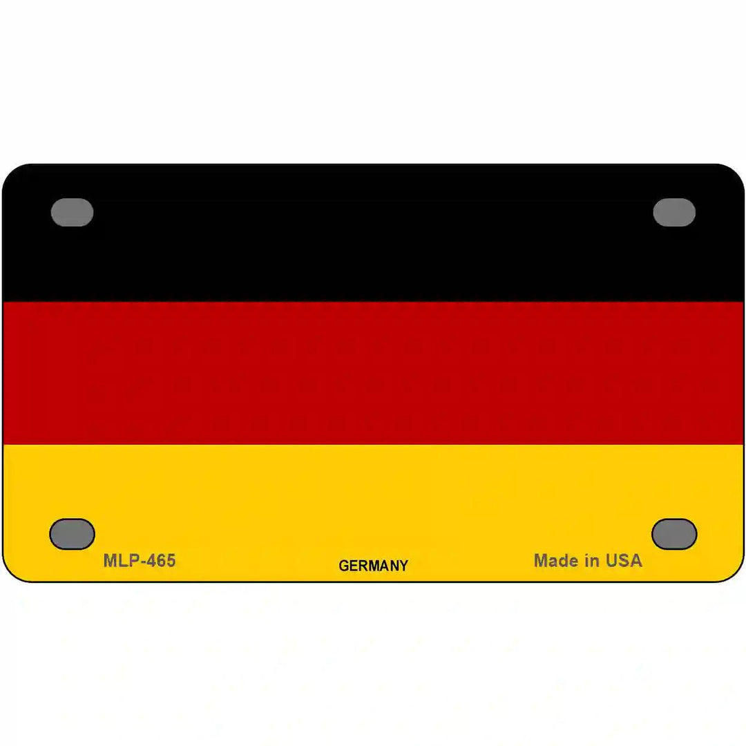 Germany Flag Metal Novelty License Plate. Offering our unique license plate designs in a 12" Standard Automotive License Plate, 7" Motorcycle/ATV Plate, 6" Bike Plate, 4" Miniature License Plate and 24" large license plate garage sign. The 12" x 6" License Plate is made out of a .032 grade aluminum and the other sizes are made out of a .025 grade aluminum, which make them lightweight and durable. All license plates will have pre-drilled holes making these decorative license plates easy to display. Choose between the sizes offered or add all to your cart to show off your design in different ways. These items are proudly made here in the USA. Check out our other different sizes with the same artwork on them in our Key Chains, Rectangle Magnets, Dog Tag Necklaces, and Hat Pins.