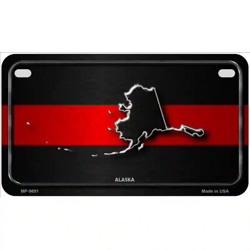 Alaska Thin Red Line Metal Novelty License Plate. Offering our unique license plate designs in a 12" Standard Automotive License Plate, 7" Motorcycle/ATV Plate, 6" Bike Plate, 4" Miniature License Plate and 24" large license plate garage sign. The 12" x 6" License Plate is made out of a .032 grade aluminum and the other sizes are made out of a .025 grade aluminum, which make them lightweight and durable. All license plates will have pre-drilled holes making these decorative license plates easy to display. Choose between the sizes offered or add all to your cart to show off your design in different ways. These items are proudly made here in the USA. Check out our other different sizes with the same artwork on them in our Key Chains, Rectangle Magnets, Dog Tag Necklaces, and Hat Pins.