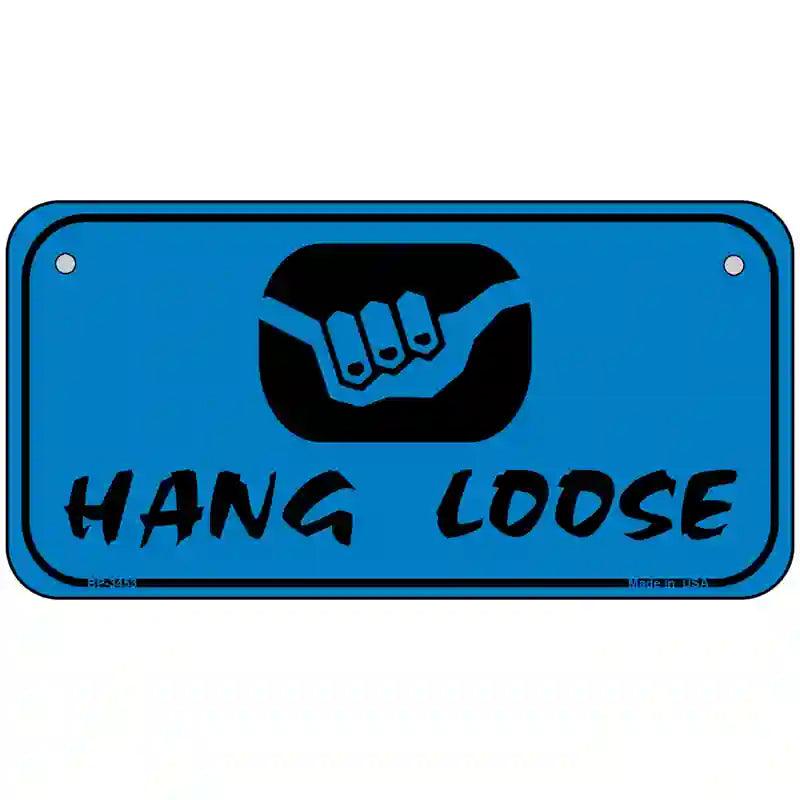 Hang Loose Metal Novelty License Plate. Offering our unique license plate designs in a 12" Standard Automotive License Plate, 7" Motorcycle/ATV Plate, 6" Bike Plate, 4" Miniature License Plate and 24" large license plate garage sign. The 12" x 6" License Plate is made out of a .032 grade aluminum and the other sizes are made out of a .025 grade aluminum, which make them lightweight and durable. All license plates will have pre-drilled holes making these decorative license plates easy to display. Choose between the sizes offered or add all to your cart to show off your design in different ways. These items are proudly made here in the USA. Check out our other different sizes with the same artwork on them in our Key Chains, Rectangle Magnets, Dog Tag Necklaces, and Hat Pins.