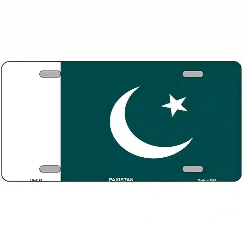 Pakistan Flag Metal Novelty License Plate. Offering our unique license plate designs in a 12" Standard Automotive License Plate, 7" Motorcycle/ATV Plate, 6" Bike Plate, 4" Miniature License Plate and 24" large license plate garage sign. The 12" x 6" License Plate is made out of a .032 grade aluminum and the other sizes are made out of a .025 grade aluminum, which make them lightweight and durable. All license plates will have pre-drilled holes making these decorative license plates easy to display. Choose between the sizes offered or add all to your cart to show off your design in different ways. These items are proudly made here in the USA. Check out our other different sizes with the same artwork on them in our Key Chains, Rectangle Magnets, Dog Tag Necklaces, and Hat Pins.