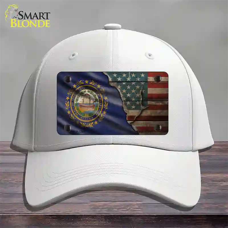 New Hampshire/American Flag Novelty License Plate Hat. Show off your style with our mounted 4" x 2.2" metal patches available in 3 different styles and over 12 different colors. Our metal patches are made out of .025 grade aluminum and the designs are dye sublimated onto the metal to give a quality high gloss finish. Our metal patches are firmly attached using double cap rivets to give the patch an elegant tight fitting look!