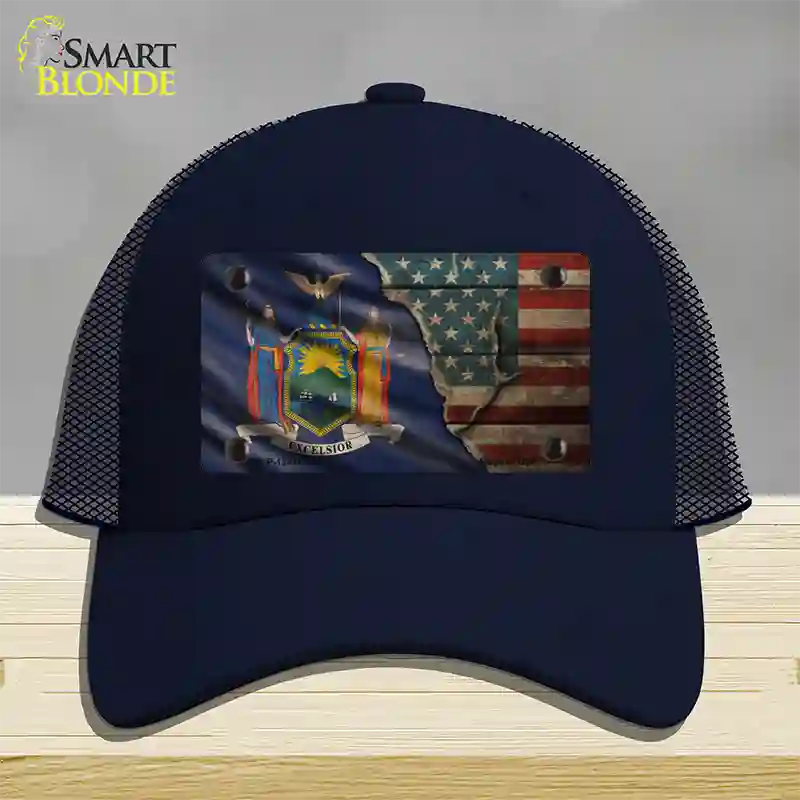New York/American Flag Novelty License Plate Hat - Mesh / Black is backordered and will ship as soon as it is back in stock.