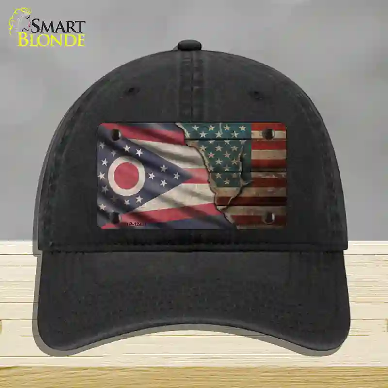 Ohio/American Flag Novelty License Plate Hat. Show off your style with our mounted 4" x 2.2" metal patches available in 3 different styles and over 12 different colors. Our metal patches are made out of .025 grade aluminum and the designs are dye sublimated onto the metal to give a quality high gloss finish. Our metal patches are firmly attached using double cap rivets to give the patch an elegant tight fitting look!
