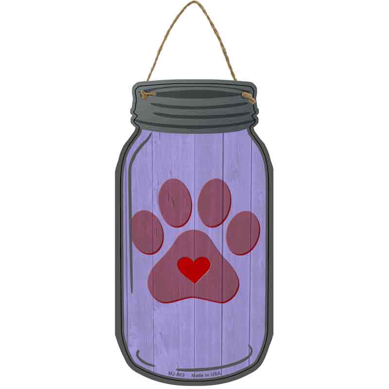 Paw Print Purple Novelty Metal Mason Jar Sign