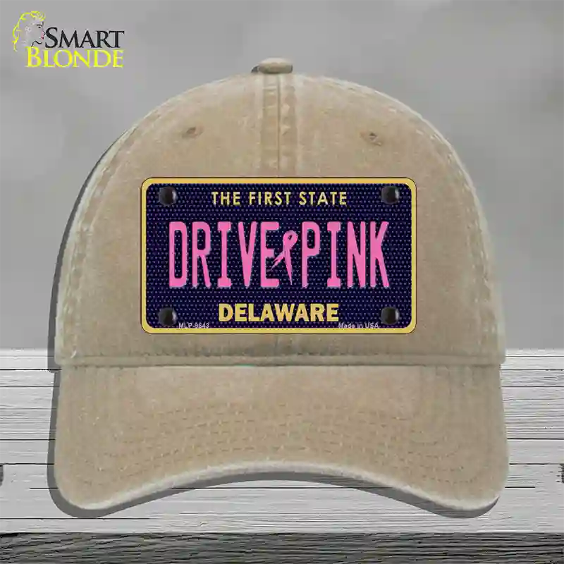 Drive Pink Delaware Novelty License Plate Hat. Show off your style with our mounted 4" x 2.2" metal patches available in 3 different styles and over 12 different colors. Our metal patches are made out of .025 grade aluminum and the designs are dye sublimated onto the metal to give a quality high gloss finish. Our metal patches are firmly attached using double cap rivets to give the patch an elegant tight fitting look!