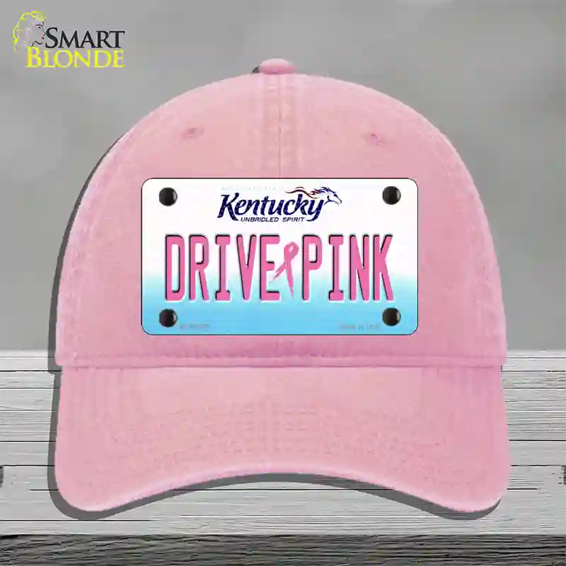 Drive Pink Kentucky Novelty License Plate Hat. Show off your style with our mounted 4" x 2.2" metal patches available in 3 different styles and over 12 different colors. Our metal patches are made out of .025 grade aluminum and the designs are dye sublimated onto the metal to give a quality high gloss finish. Our metal patches are firmly attached using double cap rivets to give the patch an elegant tight fitting look!
