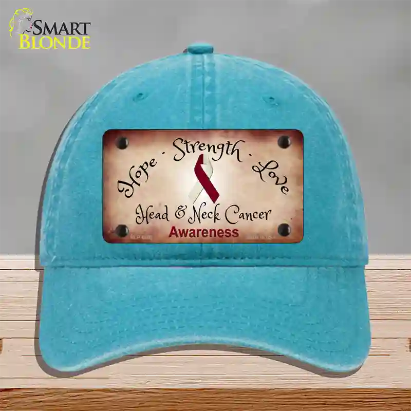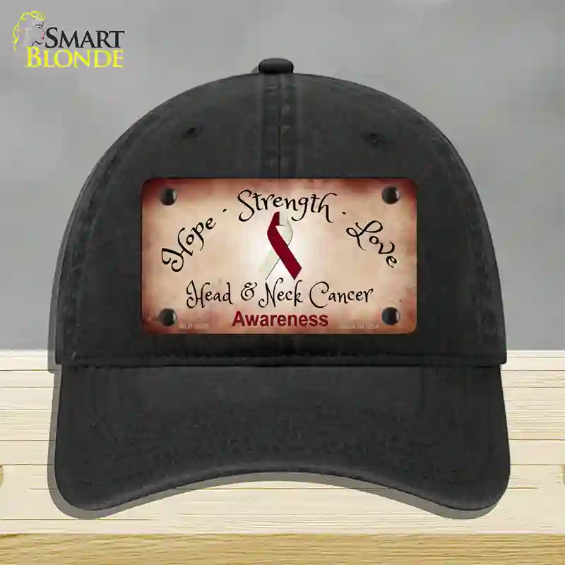 Head and Neck Cancer Ribbon Novelty License Plate Hat. Show off your style with our mounted 4" x 2.2" metal patches available in 3 different styles and over 12 different colors. Our metal patches are made out of .025 grade aluminum and the designs are dye sublimated onto the metal to give a quality high gloss finish. Our metal patches are firmly attached using double cap rivets to give the patch an elegant tight fitting look!