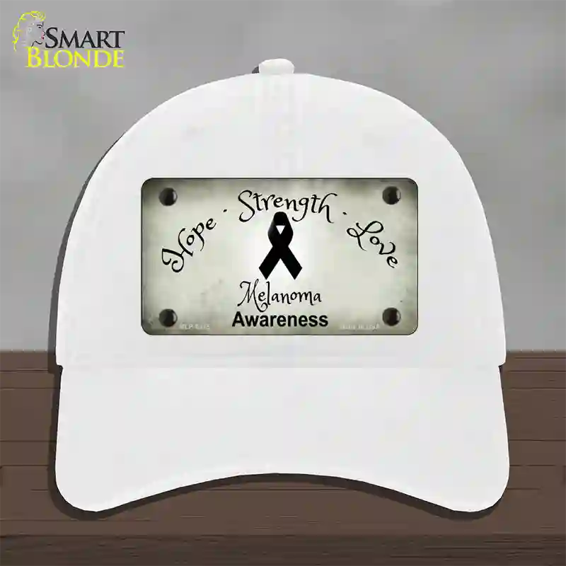 Melanoma Cancer Ribbon Novelty License Plate Hat. Show off your style with our mounted 4" x 2.2" metal patches available in 3 different styles and over 12 different colors. Our metal patches are made out of .025 grade aluminum and the designs are dye sublimated onto the metal to give a quality high gloss finish. Our metal patches are firmly attached using double cap rivets to give the patch an elegant tight fitting look!
