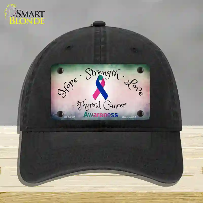 Thyroid Cancer Ribbon Novelty License Plate Hat. Show off your style with our mounted 4" x 2.2" metal patches available in 3 different styles and over 12 different colors. Our metal patches are made out of .025 grade aluminum and the designs are dye sublimated onto the metal to give a quality high gloss finish. Our metal patches are firmly attached using double cap rivets to give the patch an elegant tight fitting look!