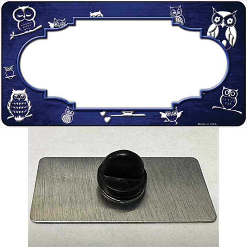 Blue White Owl Scallop Oil Rubbed Novelty Metal Hat Pin. Our hat pins/lapel pins can be used to add flair to any item including hats, suits, backpacks, and anything you can have a pin on. Check out our 14,000+ designs to find some that work for your style! Each pin will come bagged to make sure it stays in pristine condition! Our hat pins measure to be 1.5" x .75" with a nice rubber clutch on the back, with this small touch of style it is sure to make a big appearance when shown off.