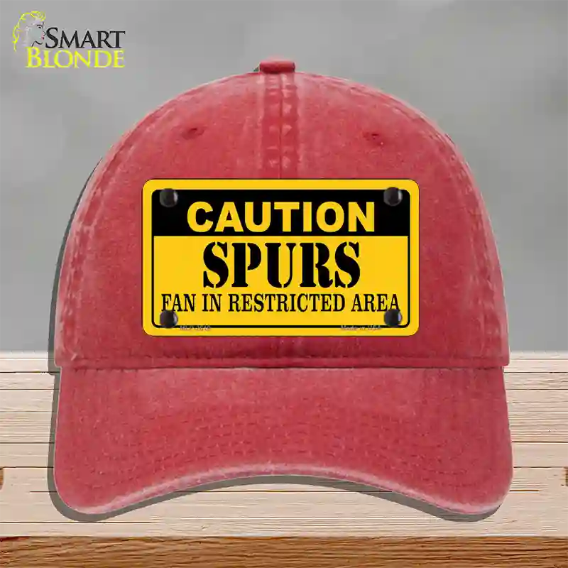 Caution Spurs Fan Novelty License Plate Hat. Show off your style with our mounted 4" x 2.2" metal patches available in 3 different styles and over 12 different colors. Our metal patches are made out of .025 grade aluminum and the designs are dye sublimated onto the metal to give a quality high gloss finish. Our metal patches are firmly attached using double cap rivets to give the patch an elegant tight fitting look!