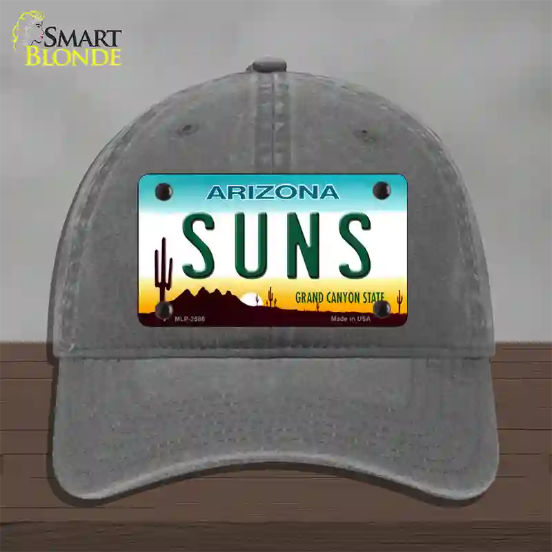 Suns Arizona State Novelty License Plate Hat. Show off your style with our mounted 4" x 2.2" metal patches available in 3 different styles and over 12 different colors. Our metal patches are made out of .025 grade aluminum and the designs are dye sublimated onto the metal to give a quality high gloss finish. Our metal patches are firmly attached using double cap rivets to give the patch an elegant tight fitting look!
