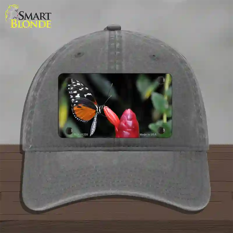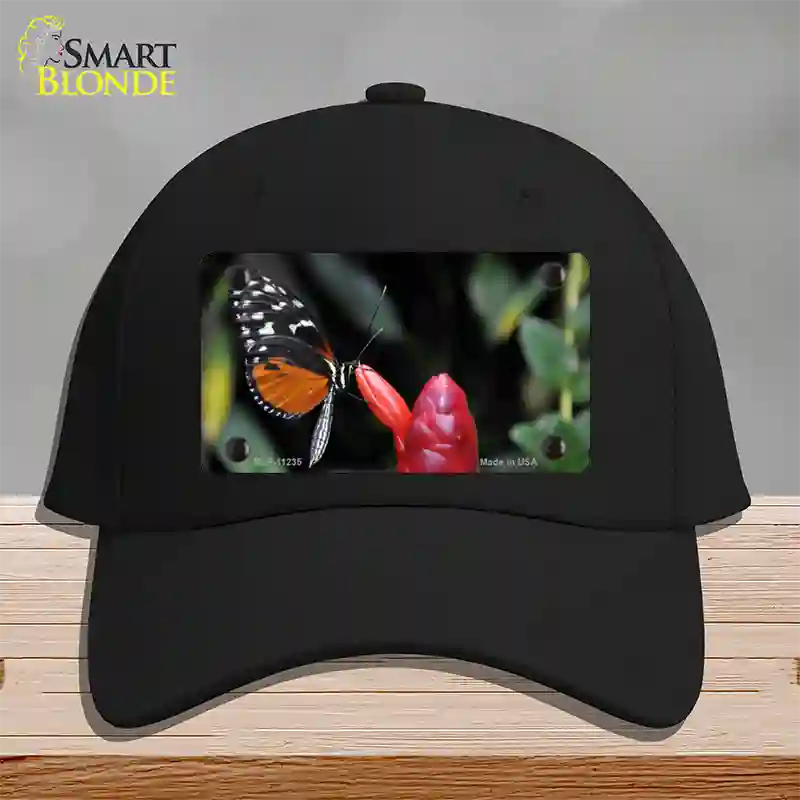 Butterfly On Red Flower Novelty License Plate Hat. Show off your style with our mounted 4" x 2.2" metal patches available in 3 different styles and over 12 different colors. Our metal patches are made out of .025 grade aluminum and the designs are dye sublimated onto the metal to give a quality high gloss finish. Our metal patches are firmly attached using double cap rivets to give the patch an elegant tight fitting look!