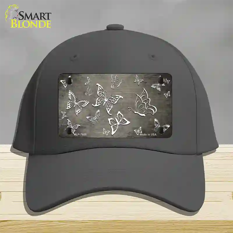 Tan White Butterfly Oil Rubbed Novelty License Plate Hat