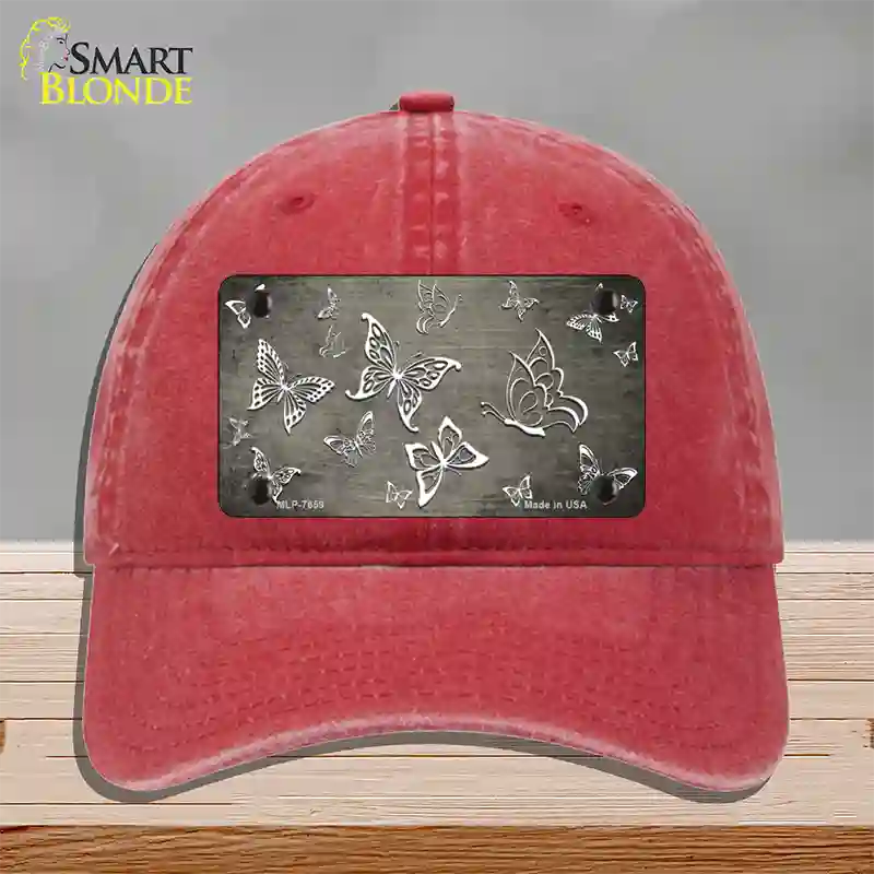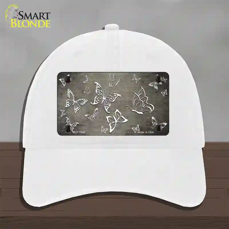 Tan White Butterfly Oil Rubbed Novelty License Plate Hat. Show off your style with our mounted 4" x 2.2" metal patches available in 3 different styles and over 12 different colors. Our metal patches are made out of .025 grade aluminum and the designs are dye sublimated onto the metal to give a quality high gloss finish. Our metal patches are firmly attached using double cap rivets to give the patch an elegant tight fitting look!