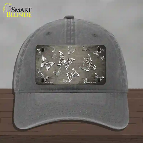 Gray White Butterfly Oil Rubbed Novelty License Plate Hat