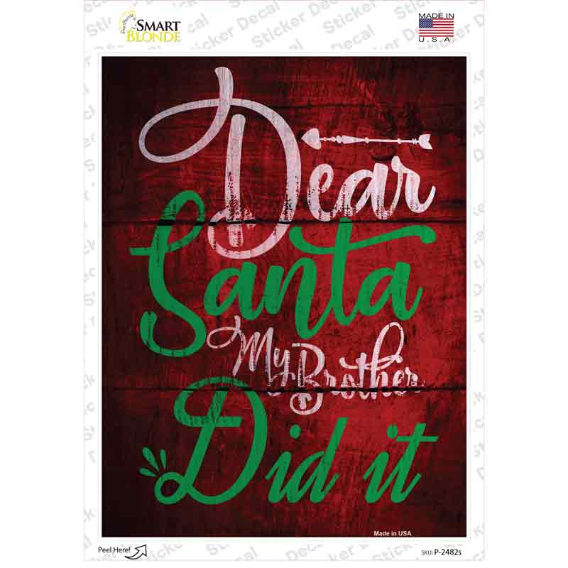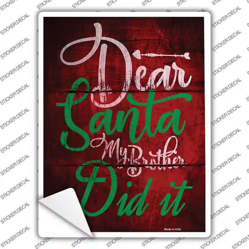 My Brother Did It Novelty Rectangle Sticker Decal. Rectangle Shaped sticker decal. With over 30,000 unique designs, our stickers are water resistant and great for use on cars, windows, water bottles, laptops, hardhats, toolboxes and much more. Every sticker is printed on high quality 6 mil sticker paper, and are individually cut out. All designs are available as 3", 6", 9" and 12" stickers. Most orders ship out within 24-48 hours.
