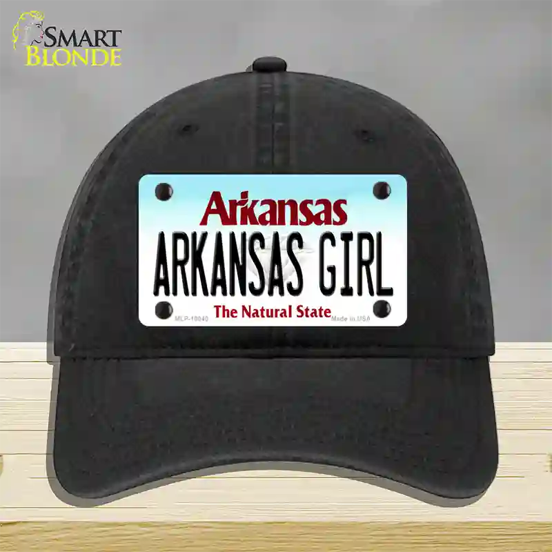 Arkansas Girl Arkansas Novelty License Plate Hat. Show off your style with our mounted 4" x 2.2" metal patches available in 3 different styles and over 12 different colors. Our metal patches are made out of .025 grade aluminum and the designs are dye sublimated onto the metal to give a quality high gloss finish. Our metal patches are firmly attached using double cap rivets to give the patch an elegant tight fitting look!
