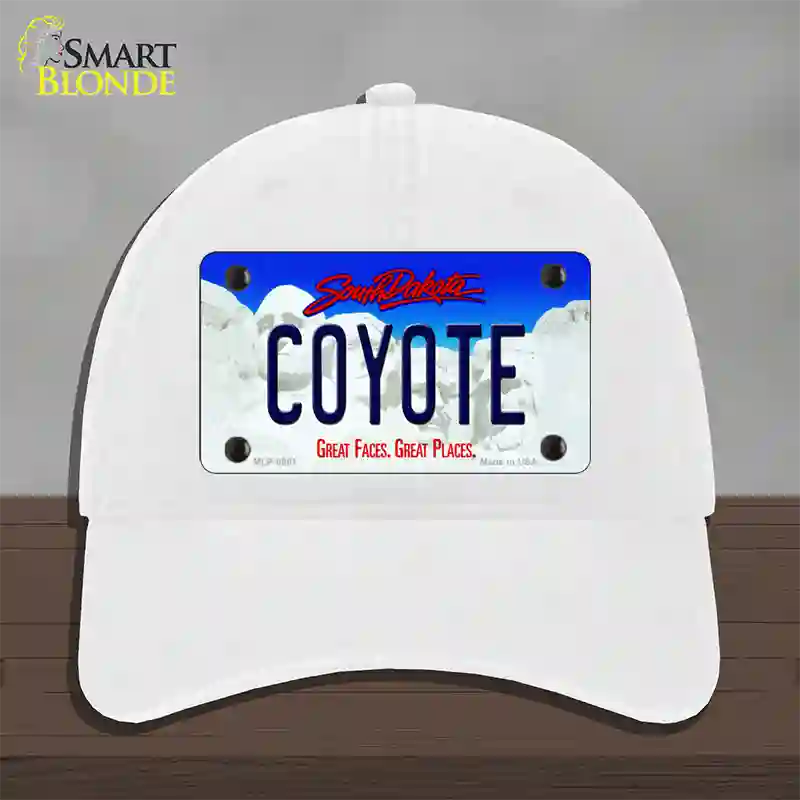 Coyote South Dakota Novelty License Plate Hat. Show off your style with our mounted 4" x 2.2" metal patches available in 3 different styles and over 12 different colors. Our metal patches are made out of .025 grade aluminum and the designs are dye sublimated onto the metal to give a quality high gloss finish. Our metal patches are firmly attached using double cap rivets to give the patch an elegant tight fitting look!