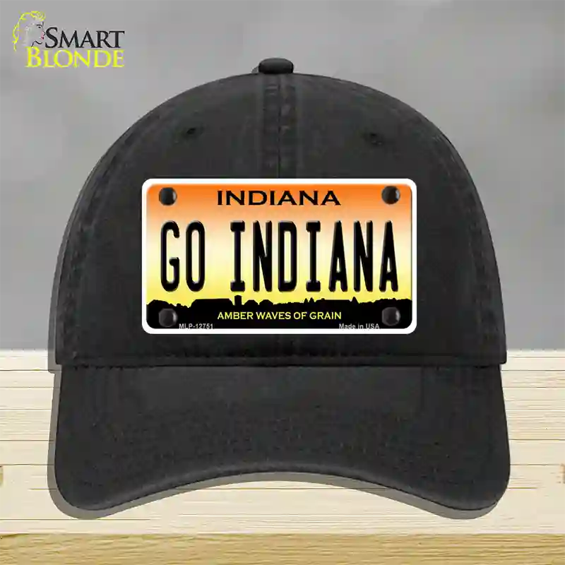 Go Indiana Novelty License Plate Hat Tag. Show off your style with our mounted 4" x 2.2" metal patches available in 3 different styles and over 12 different colors. Our metal patches are made out of .025 grade aluminum and the designs are dye sublimated onto the metal to give a quality high gloss finish. Our metal patches are firmly attached using double cap rivets to give the patch an elegant tight fitting look!