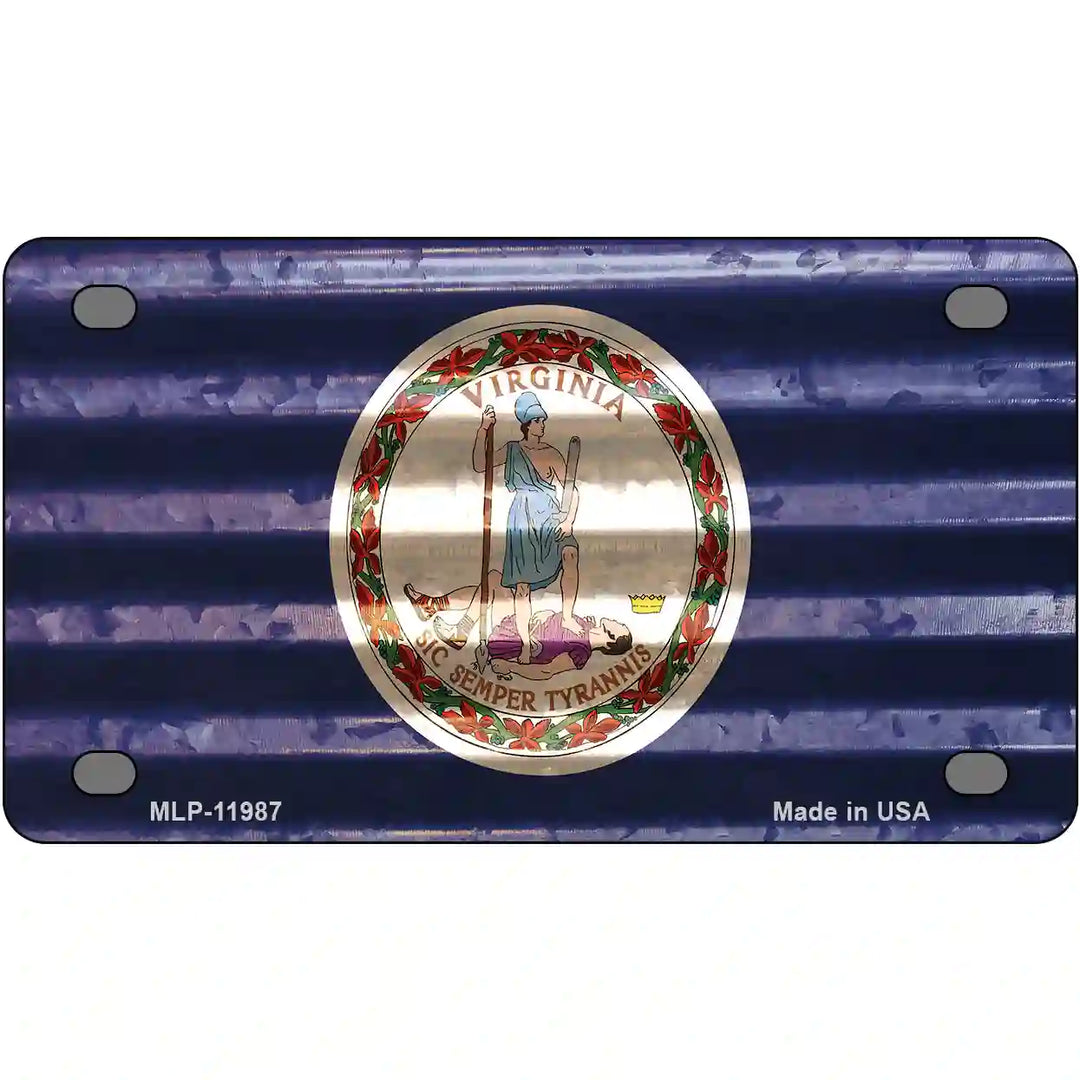 Virginia Corrugated Flag Novelty License Plate. Offering our unique license plate designs in a 12" Standard Automotive License Plate, 7" Motorcycle/ATV Plate, 6" Bike Plate, 4" Miniature License Plate and 24" large license plate garage sign. The 12" x 6" License Plate is made out of a .032 grade aluminum and the other sizes are made out of a .025 grade aluminum, which make them lightweight and durable. All license plates will have pre-drilled holes making these decorative license plates easy to display. Choose between the sizes offered or add all to your cart to show off your design in different ways. These items are proudly made here in the USA. Check out our other different sizes with the same artwork on them in our Key Chains, Rectangle Magnets, Dog Tag Necklaces, and Hat Pins.