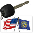 Nebraska Crossed US Flag Novelty Metal Key Chain KC-11487. 2.25" x 1.125" Key Chain. Made of the highest quality aluminum for a weather resistant finish. It is lightweight and durable. Individually shrink-wrapped and proudly made in the USA.