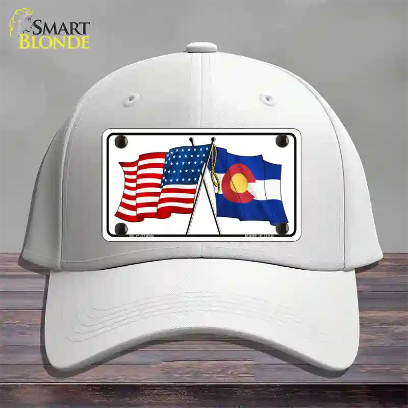 Colorado Crossed US Flag Novelty License Plate Hat. Show off your style with our mounted 4" x 2.2" metal patches available in 3 different styles and over 12 different colors. Our metal patches are made out of .025 grade aluminum and the designs are dye sublimated onto the metal to give a quality high gloss finish. Our metal patches are firmly attached using double cap rivets to give the patch an elegant tight fitting look!