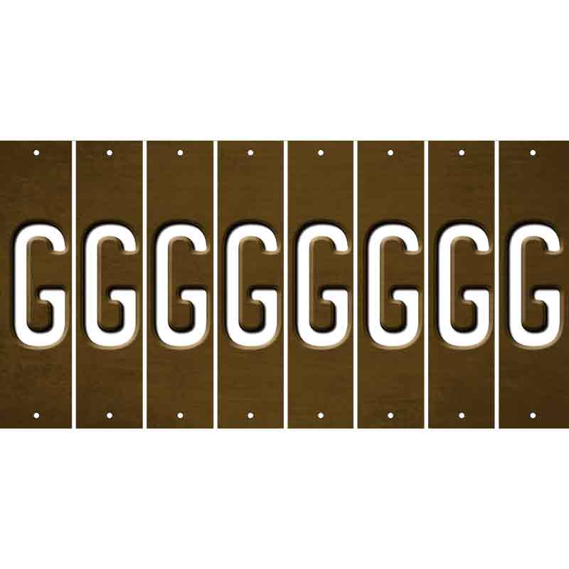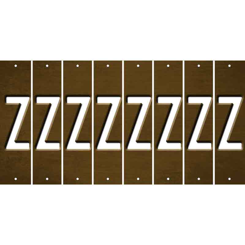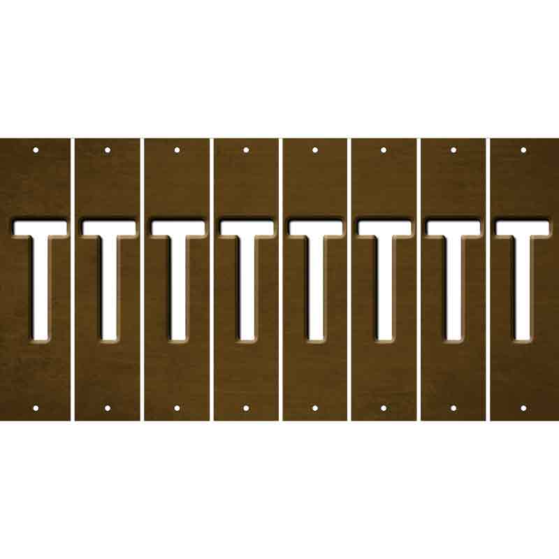 Set of 8 Brown Oil Rubbed Cut Fun Strips. Each individual strip is 1.5" x 6". Made of the highest quality high gloss aluminum for a weather resistant finish. Each strip is lightweight & durable with pre-drilled holes for quick and easy mounting. Each strip can come with or without magnets to be placed on the back. Cut fun strips can be used with magnets for refrigerator display or without magnets to be attached to walls, wood signs, etc.