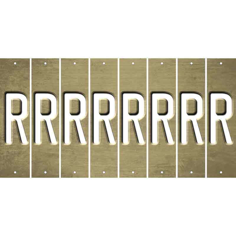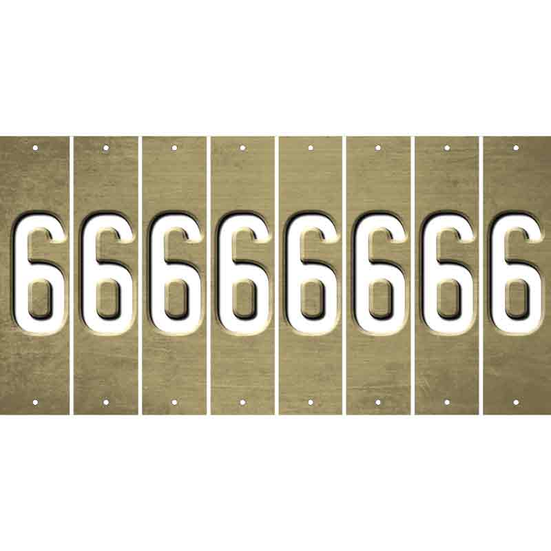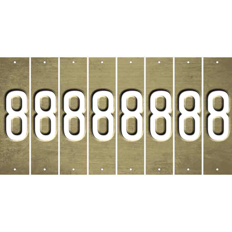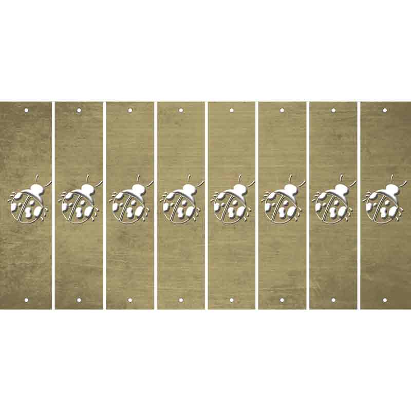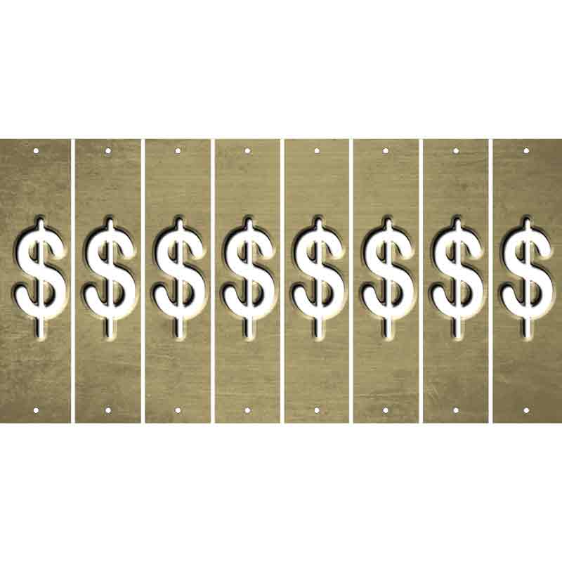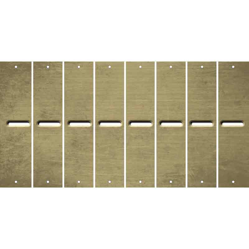 Set of 8 Gold Oil Rubbed Cut Fun Strips. Each individual strip is 1.5" x 6". Made of the highest quality high gloss aluminum for a weather resistant finish. Each strip is lightweight & durable with pre-drilled holes for quick and easy mounting. Each strip can come with or without magnets to be placed on the back. Cut fun strips can be used with magnets for refrigerator display or without magnets to be attached to walls, wood signs, etc.