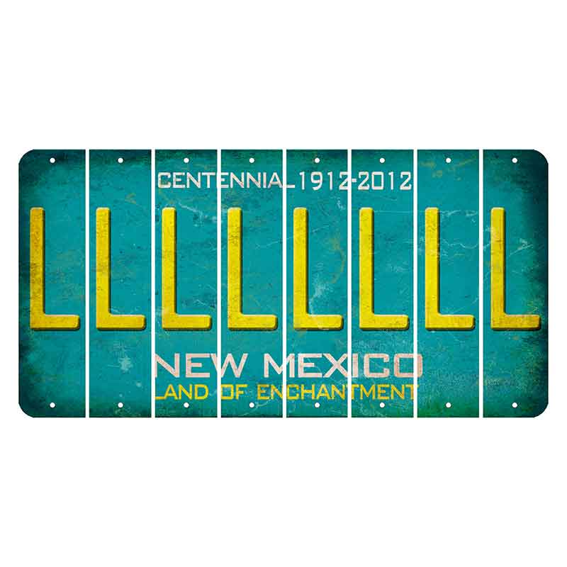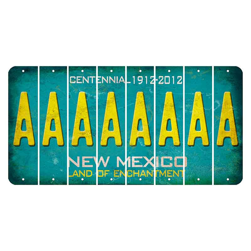 New Mexico Teal Centennial Cut License Plate Strips (Set of 8). 6 x 1.5 Set of 8 New Mexico Cut License Plate Strips. With over 250 different letters, numbers, symbols and add-ons to help any wood sign or bookmark be completely unique and a great gift! Offering different state backgrounds to further expand the support of New Mexico and its history in license plates. Made of the highest quality aluminum for a weather resistant finish. It is lightweight & durable. Each pack of 8 is shrink-wrapped and proudly made in the USA.