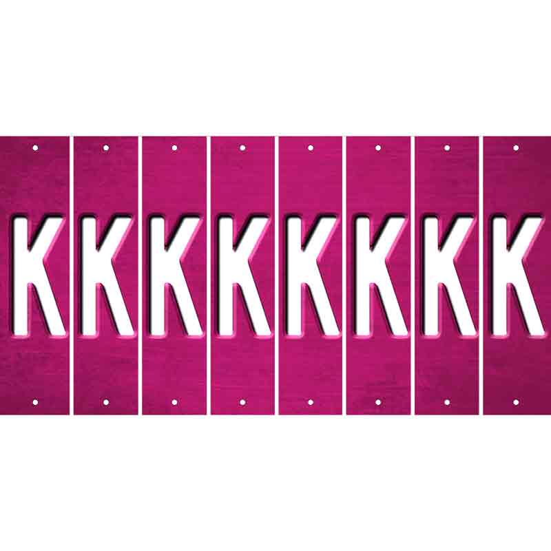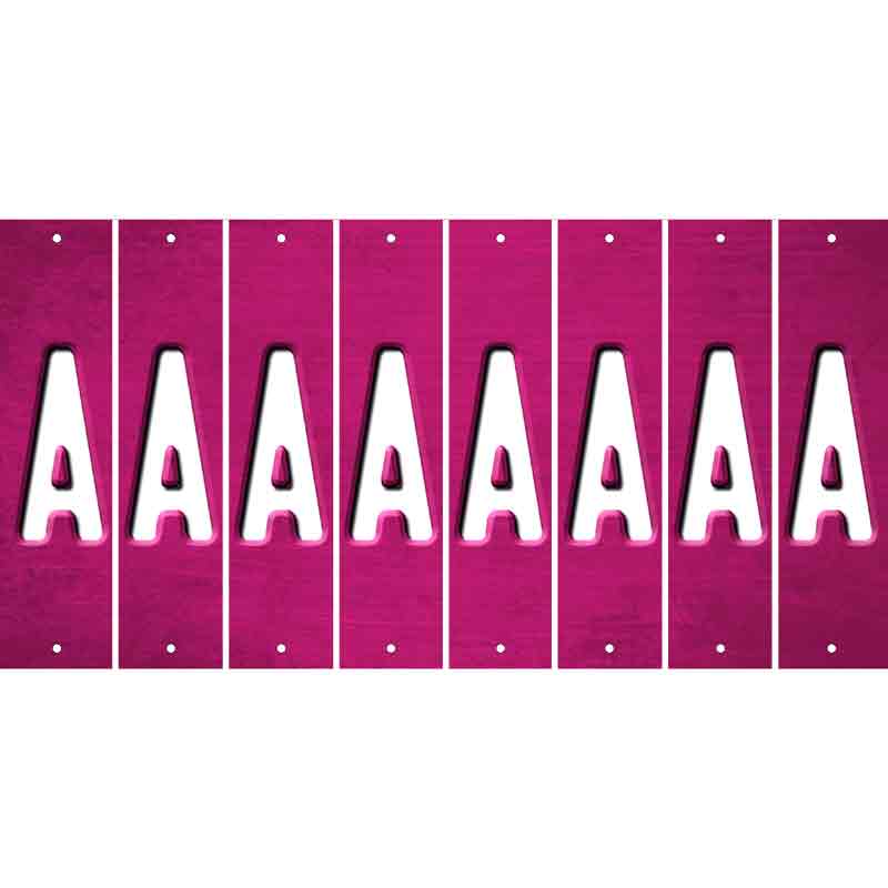 Set of 8 Pink Oil Rubbed Cut Fun Strips. Each individual strip is 1.5" x 6". Made of the highest quality high gloss aluminum for a weather resistant finish. Each strip is lightweight & durable with pre-drilled holes for quick and easy mounting. Each strip can come with or without magnets to be placed on the back. Cut fun strips can be used with magnets for refrigerator display or without magnets to be attached to walls, wood signs, etc.