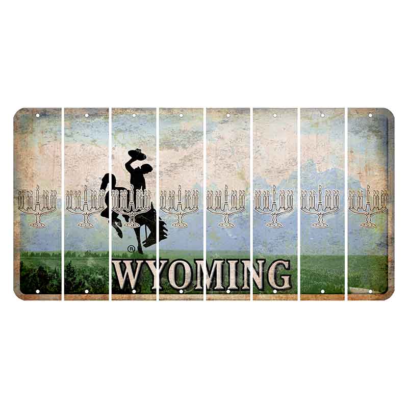 Wyoming Teton Range Cut License Plate Strips (Set of 8). 6 x 1.5 Set of 8 Wyoming Cut License Plate Strips. With over 250 different letters, numbers, symbols and add-ons to help any wood sign or bookmark be completely unique and a great gift! Offering different state backgrounds to further expand the support of Wyoming and its history in license plates. Made of the highest quality aluminum for a weather resistant finish. It is lightweight & durable. Each pack of 8 is shrink-wrapped and proudly made in the USA.