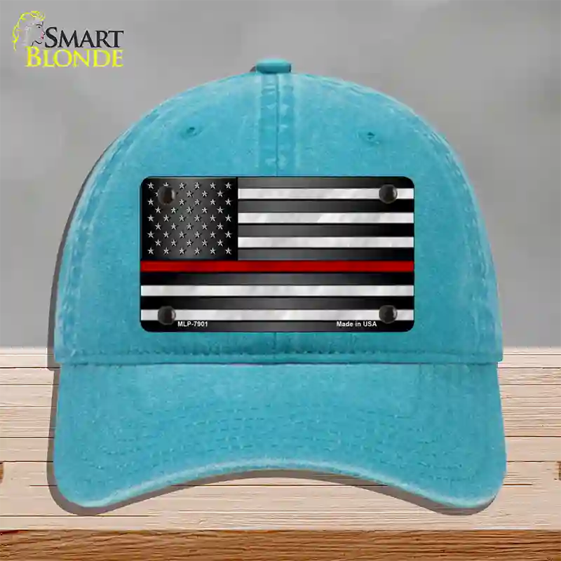 American Flag Thin Red Line Novelty License Plate Hat. Show off your style with our mounted 4" x 2.2" metal patches available in 3 different styles and over 12 different colors. Our metal patches are made out of .025 grade aluminum and the designs are dye sublimated onto the metal to give a quality high gloss finish. Our metal patches are firmly attached using double cap rivets to give the patch an elegant tight fitting look!