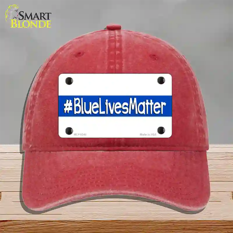 Blue Lives Matter Novelty License Plate Hat. Show off your style with our mounted 4" x 2.2" metal patches available in 3 different styles and over 12 different colors. Our metal patches are made out of .025 grade aluminum and the designs are dye sublimated onto the metal to give a quality high gloss finish. Our metal patches are firmly attached using double cap rivets to give the patch an elegant tight fitting look!