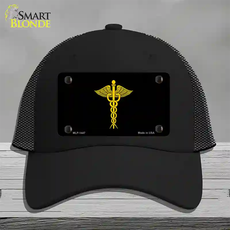Caduceus Novelty License Plate Hat. Show off your style with our mounted 4" x 2.2" metal patches available in 3 different styles and over 12 different colors. Our metal patches are made out of .025 grade aluminum and the designs are dye sublimated onto the metal to give a quality high gloss finish. Our metal patches are firmly attached using double cap rivets to give the patch an elegant tight fitting look!