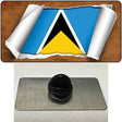 St Lucia Flag Scroll Novelty Metal Hat Pin. Our hat pins/lapel pins can be used to add flair to any item including hats, suits, backpacks, and anything you can have a pin on. Check out our 14,000+ designs to find some that work for your style! Each pin will come bagged to make sure it stays in pristine condition! Our hat pins measure to be 1.5" x .75" with a nice rubber clutch on the back, with this small touch of style it is sure to make a big appearance when shown off.
