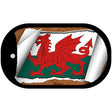 Wales Flag Scroll Metal Novelty Dog Tag Necklace DT-9324. 1" x 2" dog tag kit including 15" silver chain and silencer. Made of the highest quality aluminum for a weather resistant finish. It is lightweight and durable. Proudly made in the USA.