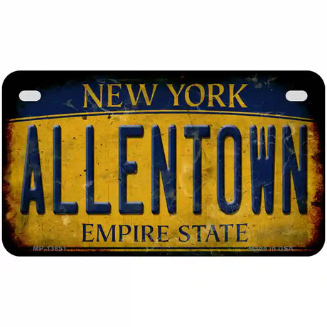 Allentown NY Yellow Rusty Novelty Metal License Plate Tag
