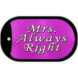 Mrs Always Right Novelty Metal Dog Tag Necklace DT-9427 - 2" x 1" Dog Tag (DT) is backordered and will ship as soon as it is back in stock.