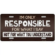 Responsible For What I Say Novelty Metal License Plate - 12" x 6" Automotive (LP) is backordered and will ship as soon as it is back in stock.