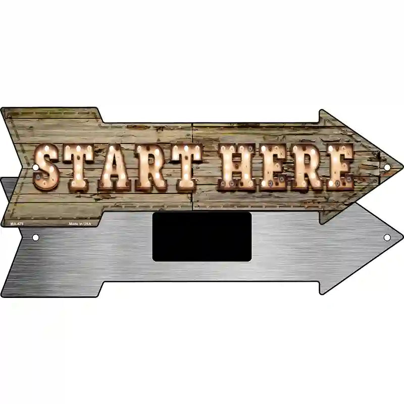 Start Here Bulb Letters Novelty Metal Arrow Sign
