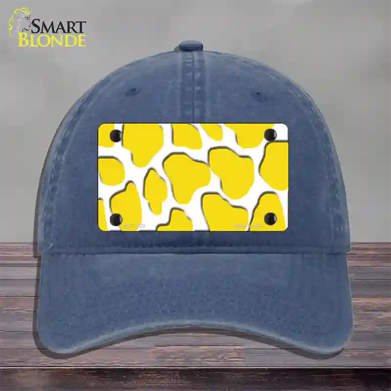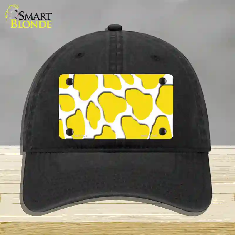 Yellow White Giraffe Novelty License Plate Hat. Show off your style with our mounted 4" x 2.2" metal patches available in 3 different styles and over 12 different colors. Our metal patches are made out of .025 grade aluminum and the designs are dye sublimated onto the metal to give a quality high gloss finish. Our metal patches are firmly attached using double cap rivets to give the patch an elegant tight fitting look!