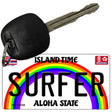 Surfer Novelty Metal Key Chain KC-12549. 2.25" x 1.125" Key Chain. Made of the highest quality aluminum for a weather resistant finish. It is lightweight and durable. Individually shrink-wrapped and proudly made in the USA.